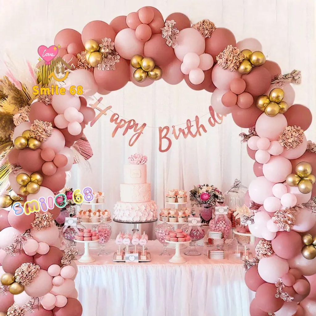 Kit 125 Balões Liso Rosê + Rosa Claro + Ouro Cromado Metalizado Bexiga Para Decoração Festas