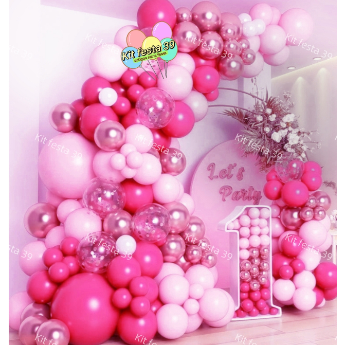 Kit 125 Balões Rosa Claro + Pink + Rosa Metalizado Para Festas e Aniversário