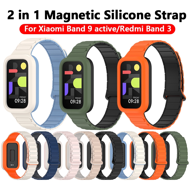 Pulseira De Silicone Para Xiaom MI Band 9 Active/Redmi 3 Relógio Fivela Magnética Banda Substituição Quadro Caso