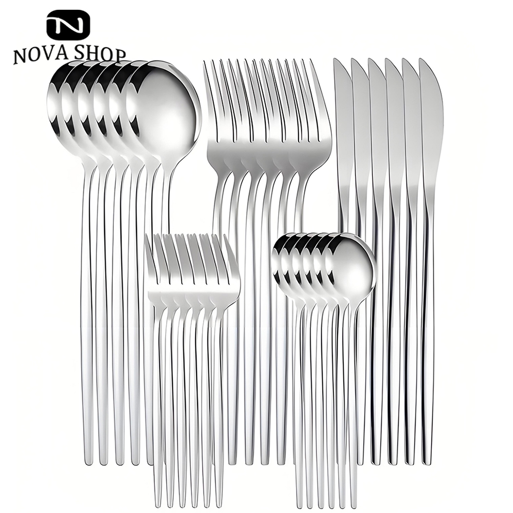 Talheres de Aço Inox 24 Peças Prata, Dourado, Dourado com Preto Garfo Colher Faca