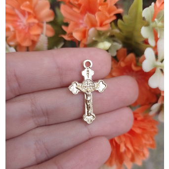 30 Cruz pequena São Bento Dourado - Pingente Cruz São Bnento para Terço de Pulso e Artesanato