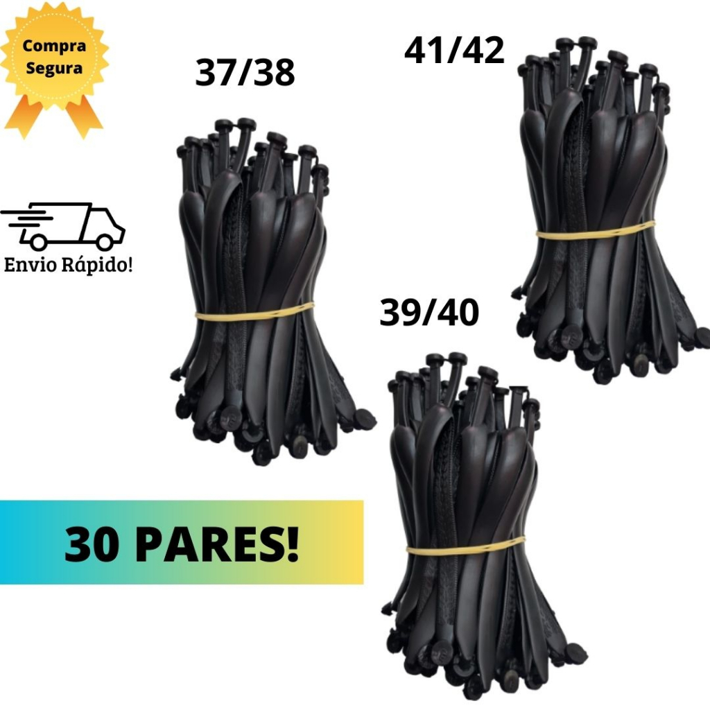 Par de Tira Alça para Chinelo Kit com 30 pares Correia Grossa Tradicional MODELO TOP Tiras Alças Preta