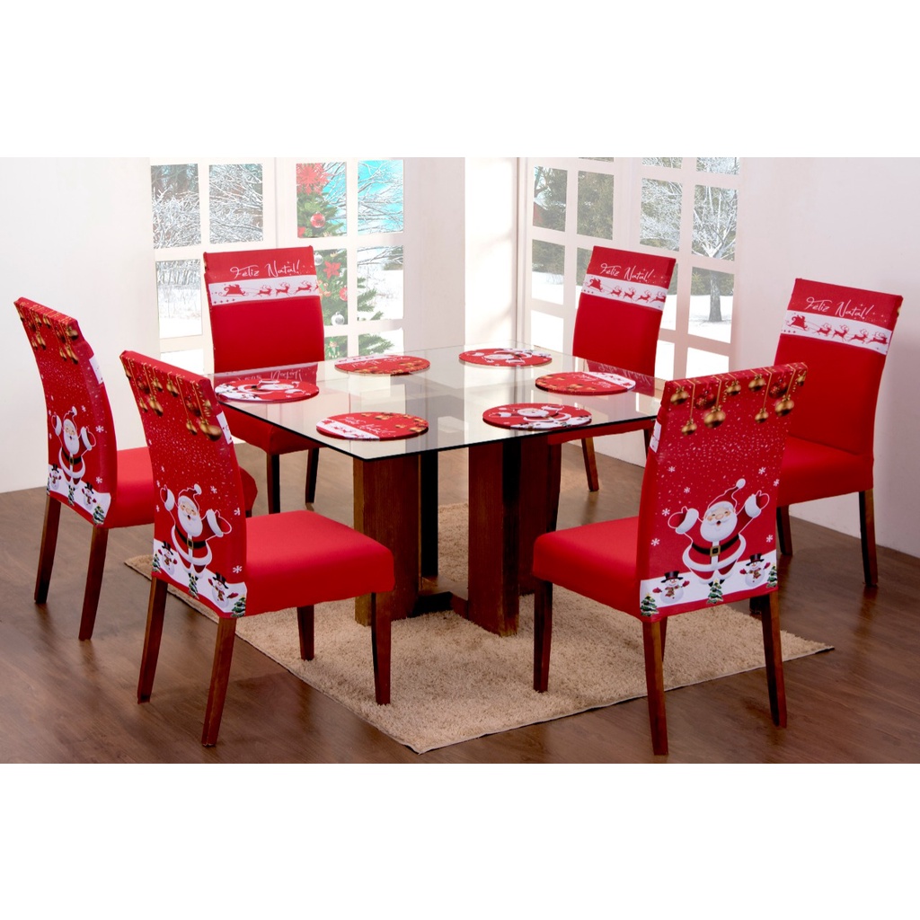 Capa de Cadeira Natal Kit com 4 peças Estampas Natalinas para as festas de final de ano