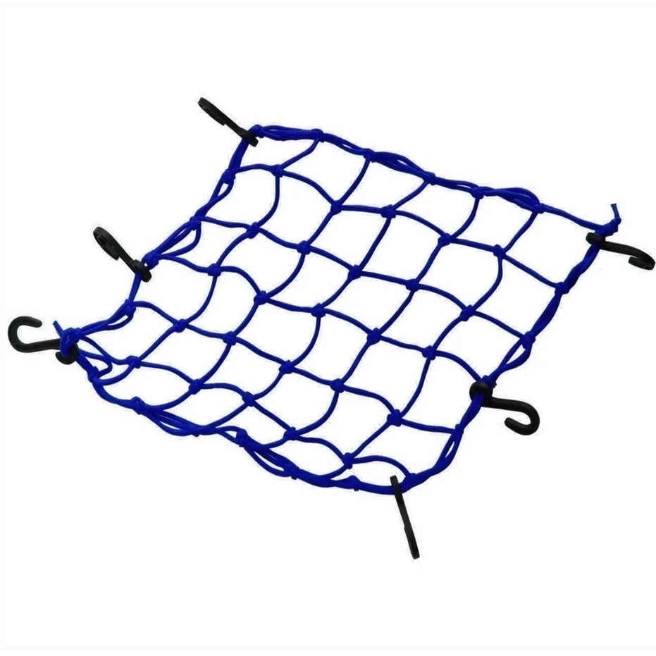 Rede Elástica Aranha 35X35 AZUL + 2 Extensor 1,20M Capacete Bagageiro Moto/Bicicleta/Carro/Barco