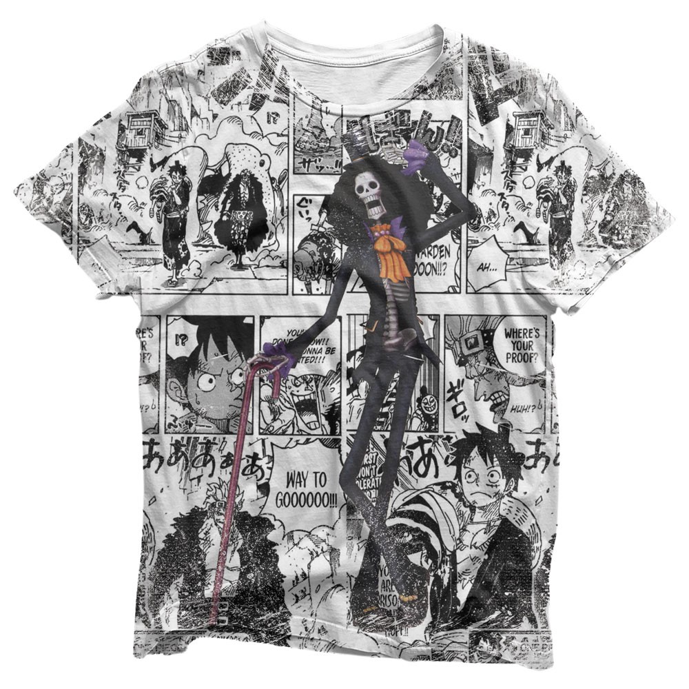 Camisa Esqueleto de Casaco Preto Brook Mangá - Camisas One Piece Estampa Total