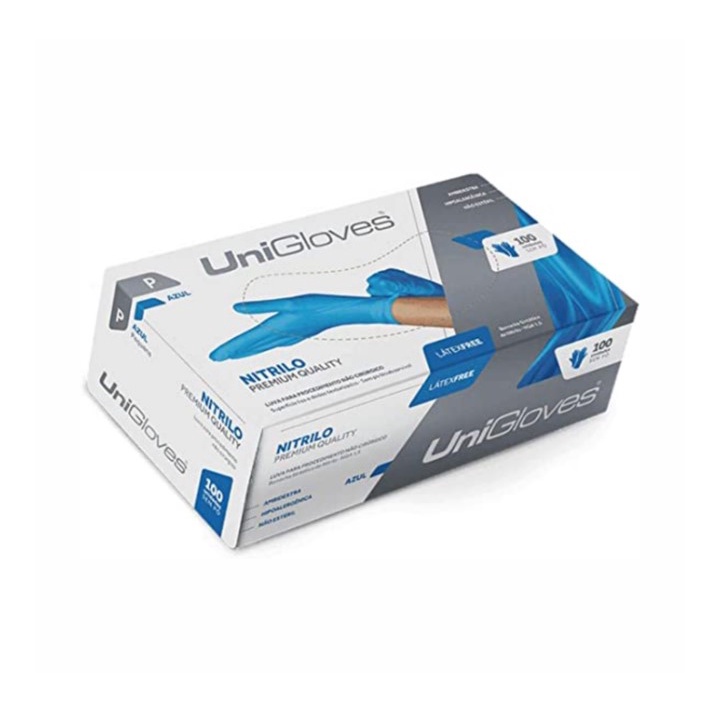 Luva de Procedimento Nitrilica Azul Blue Sem Po 100un Unigloves