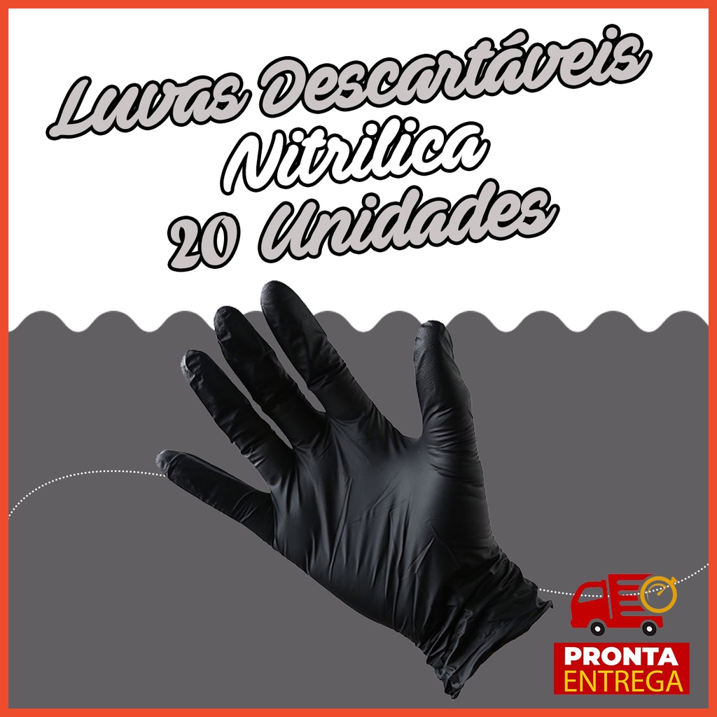 20 Unidades De Luva Nitrilica Preta Sem Pó Procedimento Industrial Original Descarpack Envio rápido