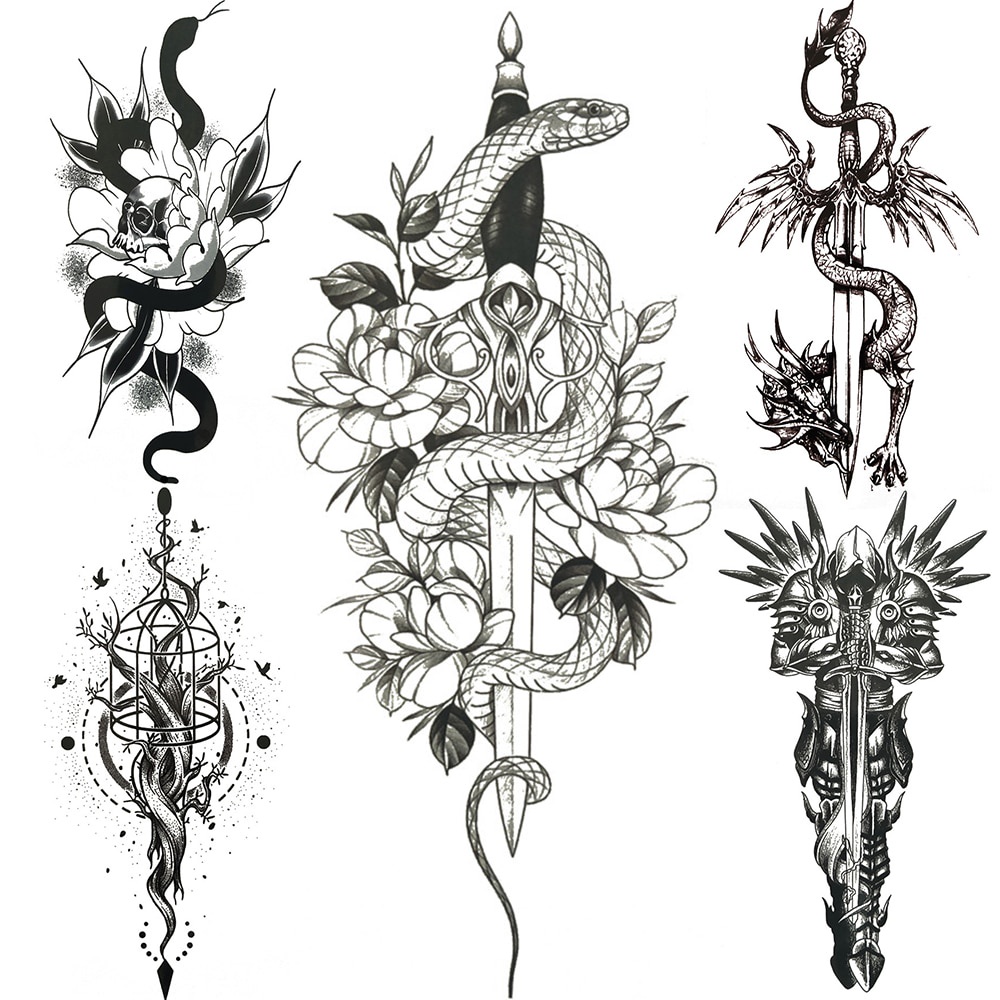 Tatuagem Temporária De Cobra Especial Lírio Flor Para Homens Mulheres Dragão Preto Rei Falsas Tatuagens Adesivo Guerreiro Flecha Corpo Braço De Espada