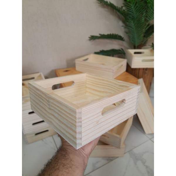 Kit 5 un. Caixote de Madeira Pinus Cesta de Madeira P 24x16x7 cm