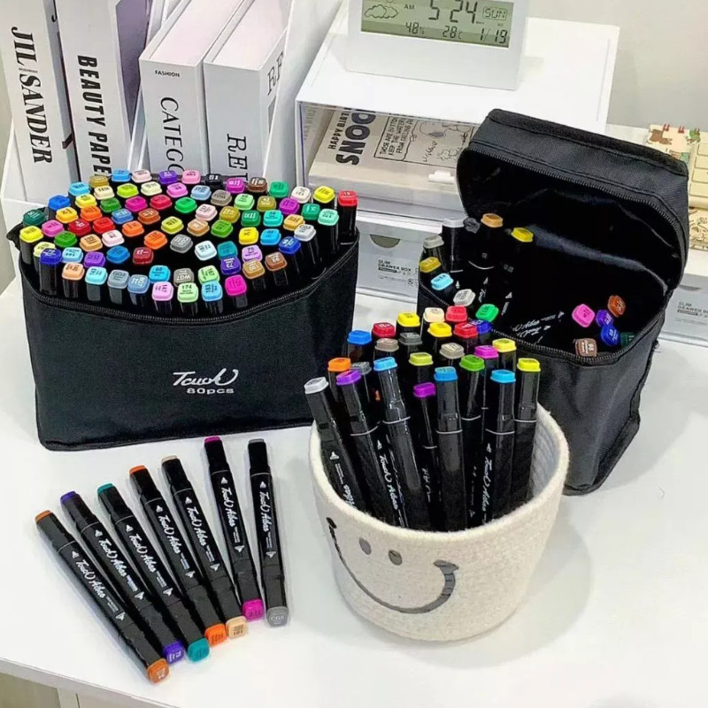 24/36/48/60/80 Cores Caneta Marcadora Canetinhas Coloridas Kit Com Ponta Dupla/marcador Touch/caneta Marker