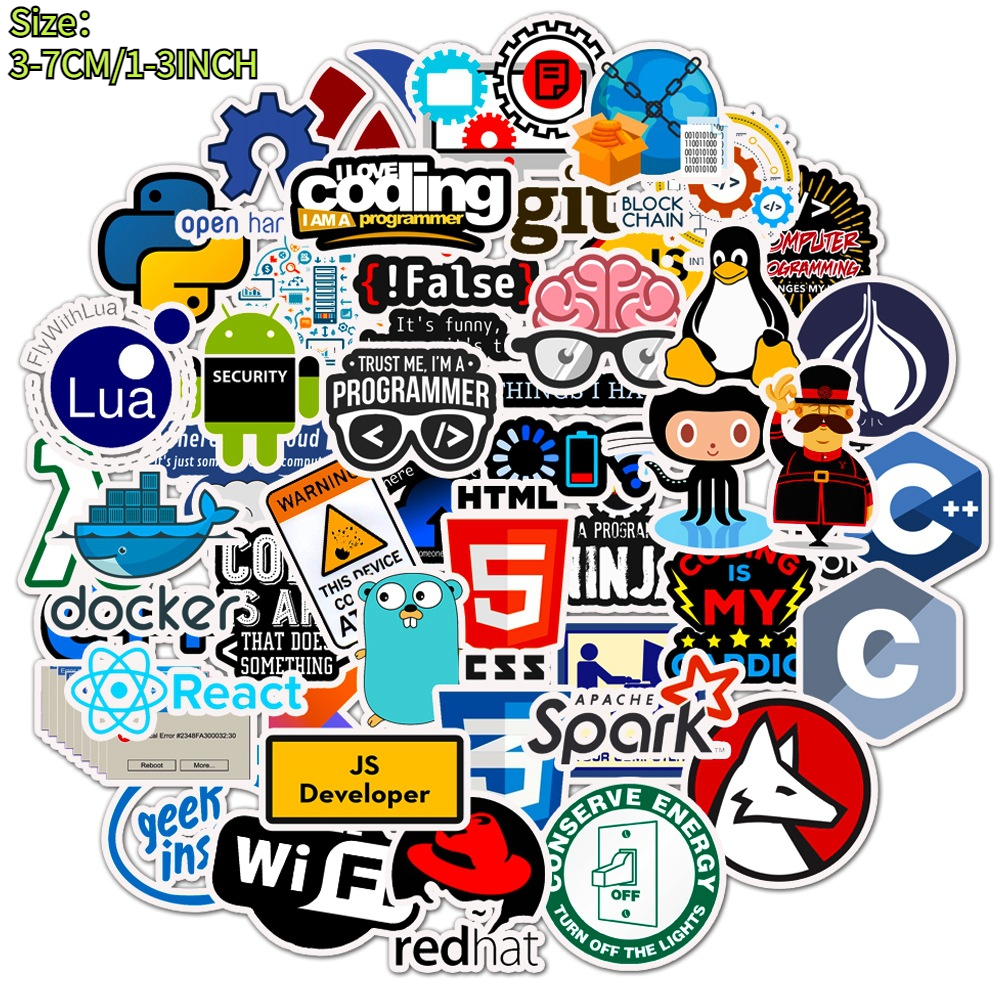 50Pcs Programador Software Série de Idiomas Autocolantes Grafite para Estojos de Capacete e Malas de Celular Decorativos