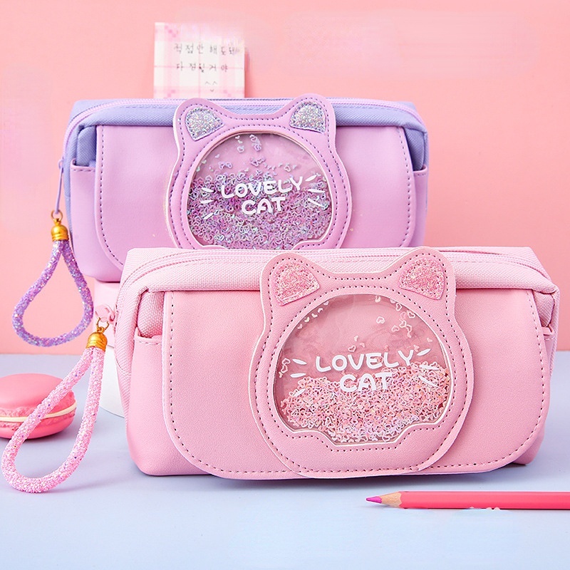 Estojo De Lápis De Três Camadas/Criativo/Versão Coreana/Tecido/Gato/Papelaria