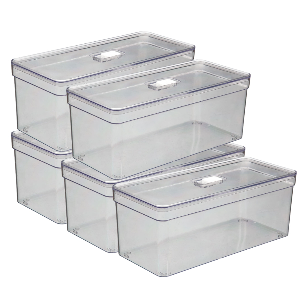 Kit 5 Organizador de Geladeira 3,8L e Porta Ovos 3,6L c/ Respirador Móvel e Cesto Removível Acrílico