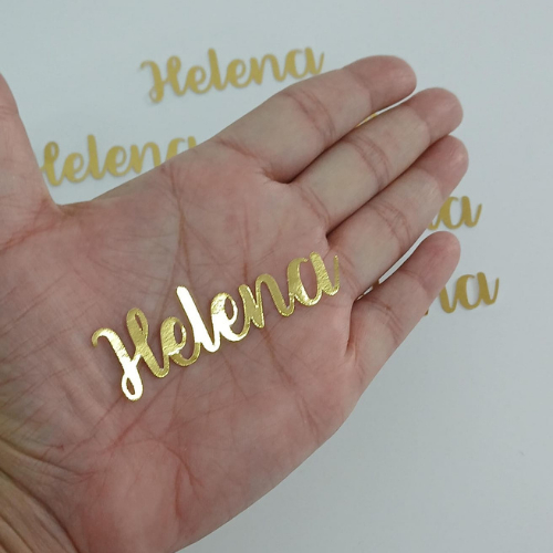 Kit 30 Apliques de Nomes Personalizados em Papel Lamicote - Dourado ou Prata