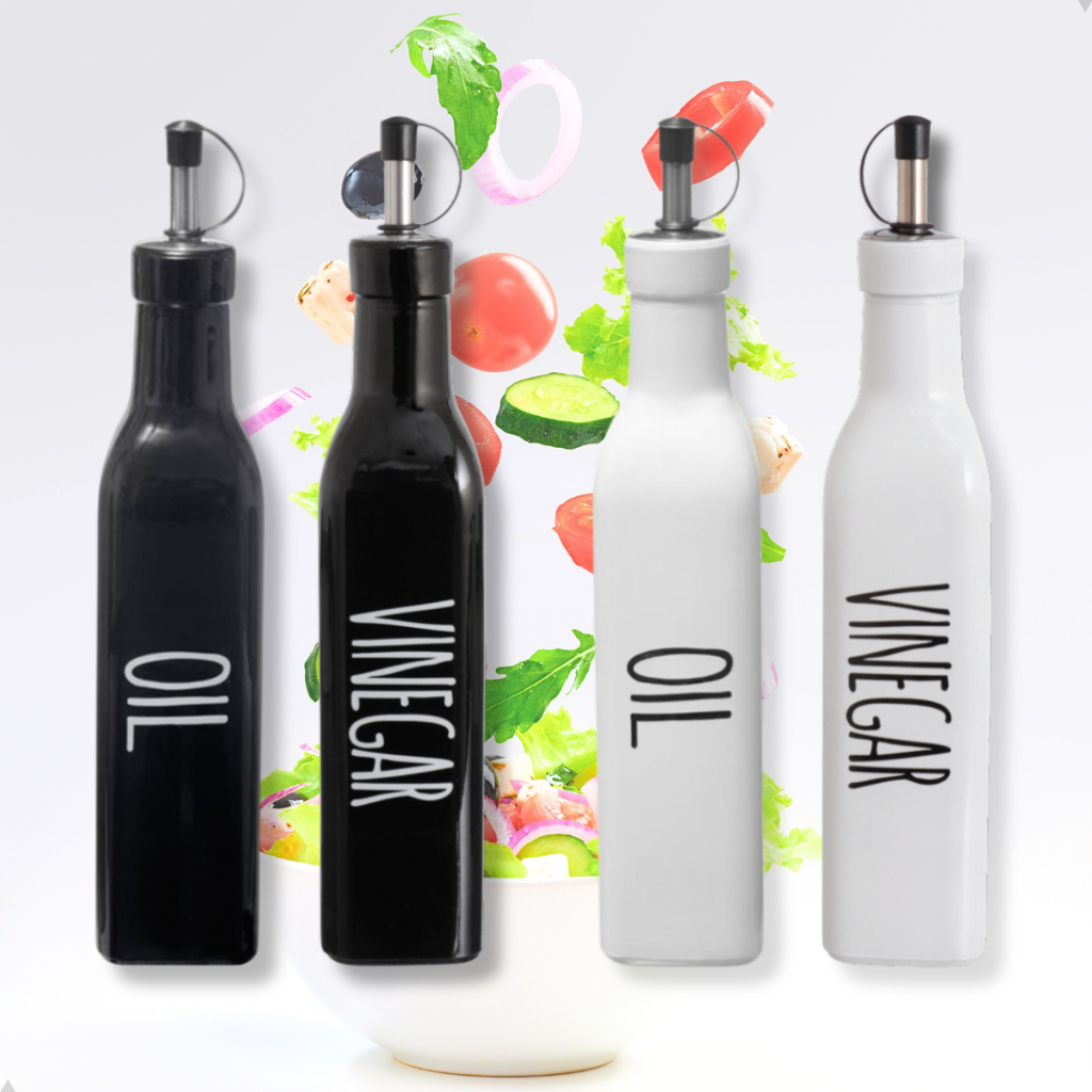 Kit Galheteiro 500ml Porta Azeite e Vinagre de Vidro Premium e Aço Inox com Dosador 500ml