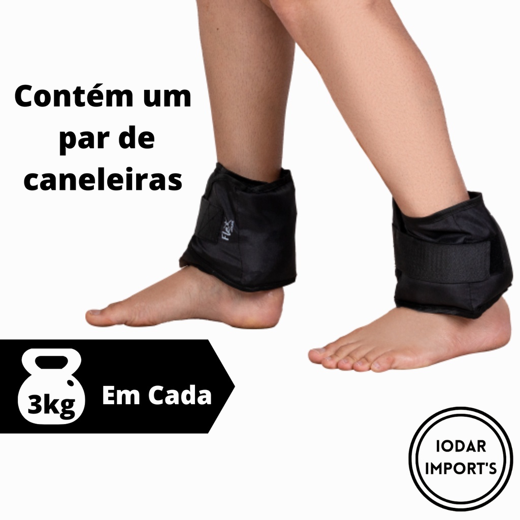 Par de Caneleira Peso 3kg Treinar pernas Treinar em Casa Academia Tornozeleira Funcional Preta