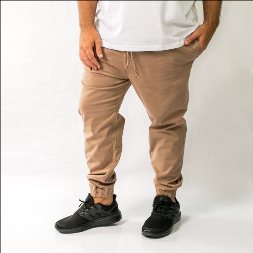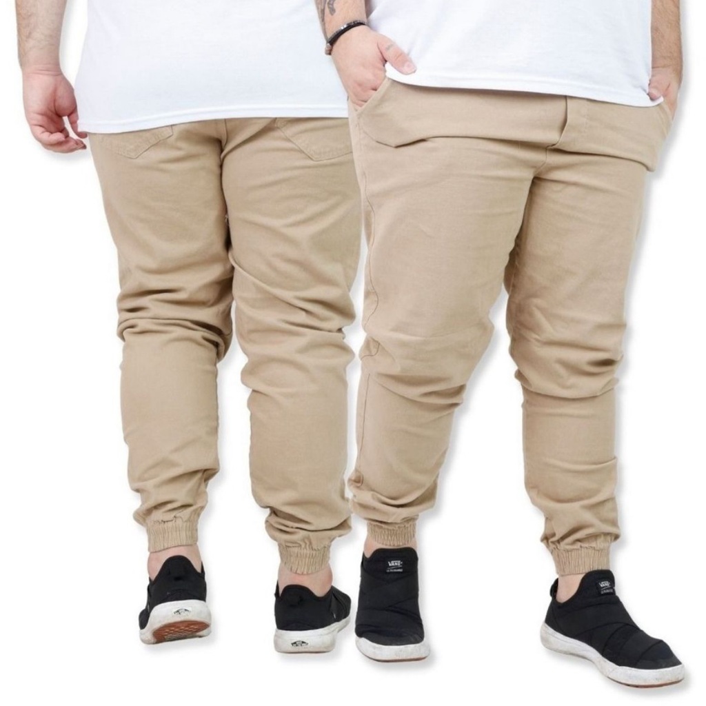 Calça Jogger Plus size Masculina Sarja Preta Beje G1 G2 G3 G4