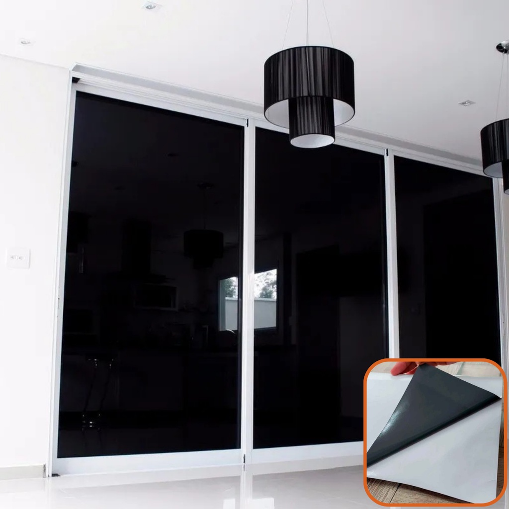 Adesivo Vinil Preto Blecaute Bloqueia Luz Solar Janela Vidro Porta Box Pode Lavar