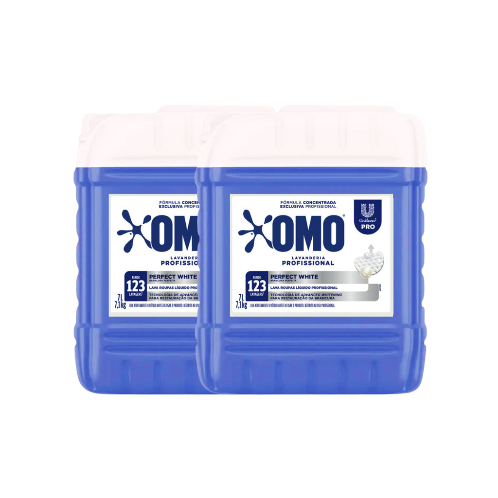 Kit 2und Lava Roupas Líquido Perfect White Omo 7L cada