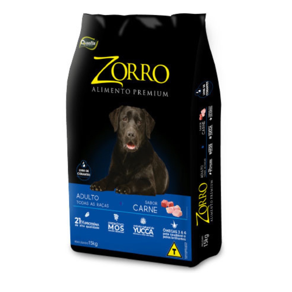 Raçaõ Zorro Premium adulto todas as raças Sabor carne 15 kg