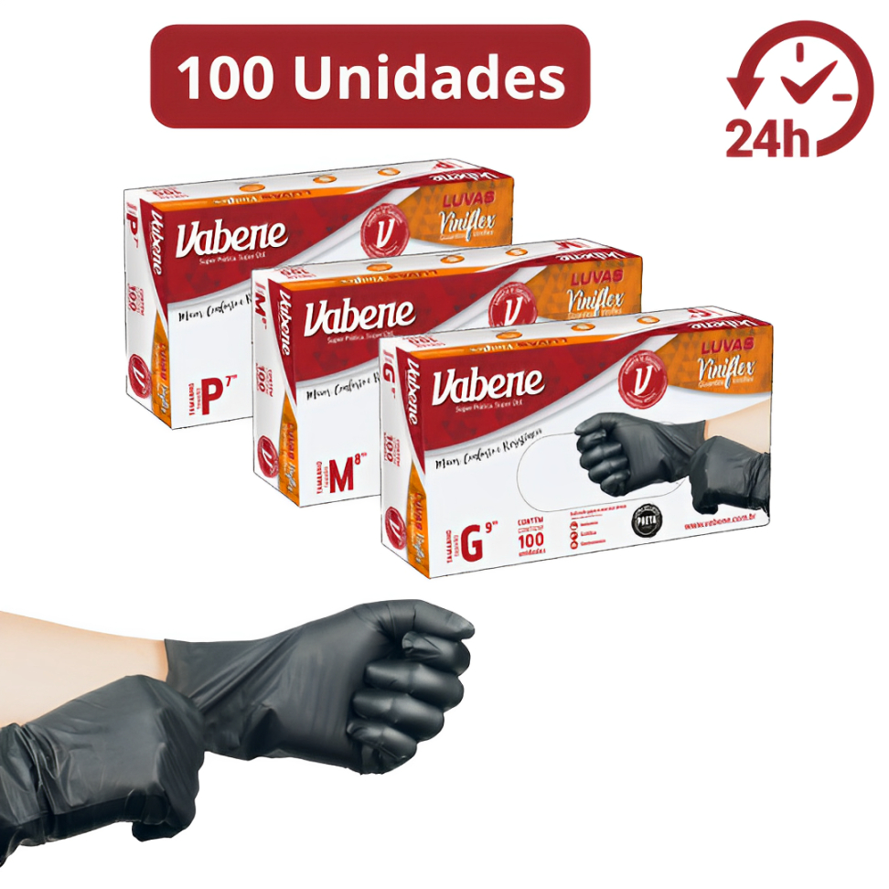 Luva Descartável Preta Black Vinil Sem Pó Caixa C/100 Unidades Luva de Vinil Preta