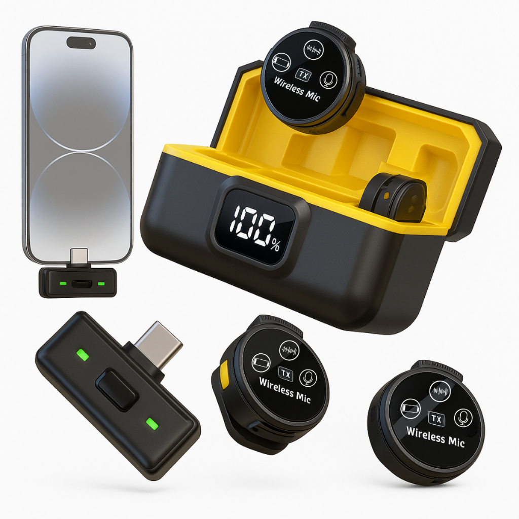 Microfone De Lapela Magnético Sem Fio Com Cancelamento De Ruído Para Telefone iSO/Android Type-c Plug and Play