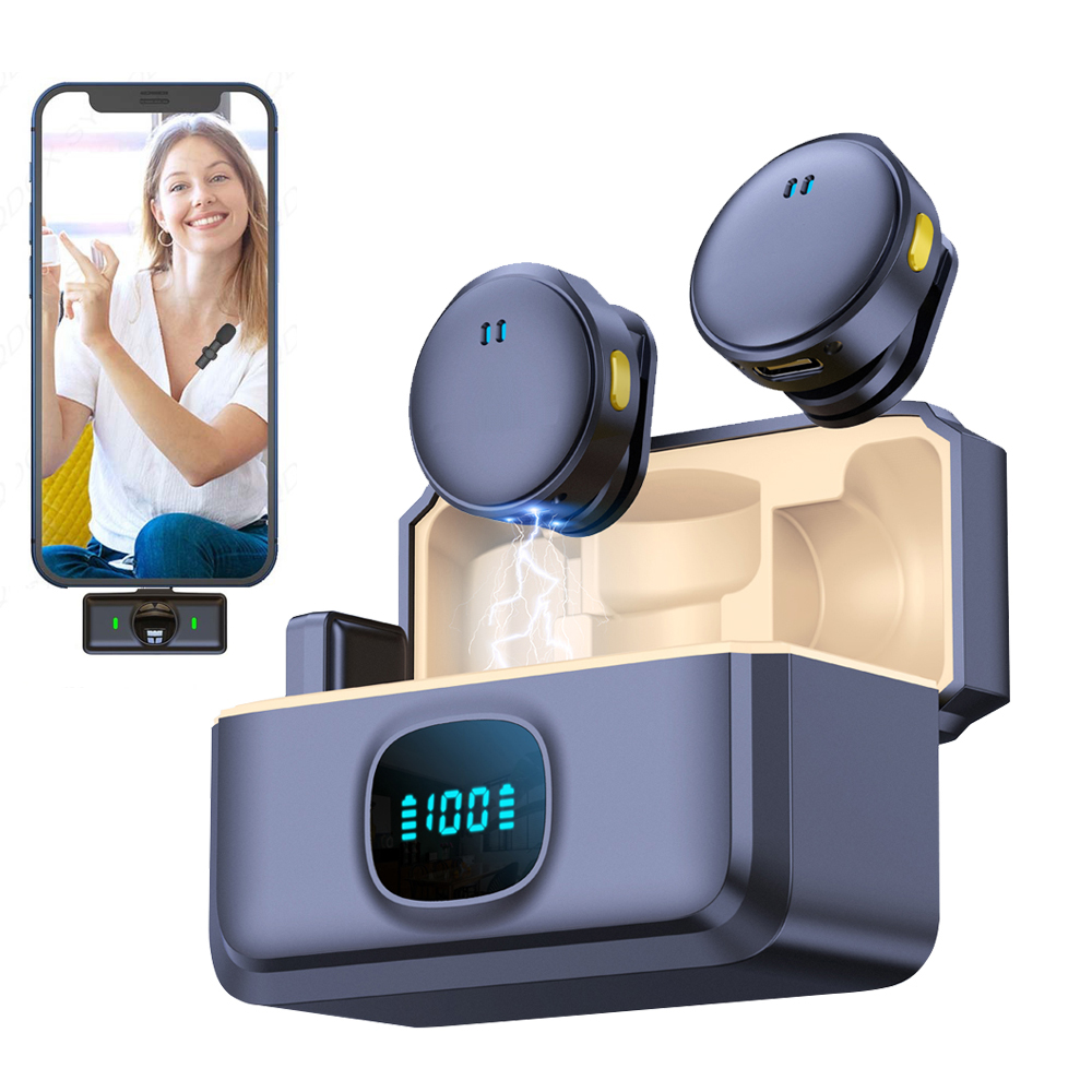 Novo Microfone Sem Fio Lavalier Gravação De Vídeo De Áudio Redução De Ruído Plug and Play 2.4G Chip Telefone Magnético Ao Vivo Um A Dois Botões De Sucção Caixa De Carregamento De Microfones De Colarinho