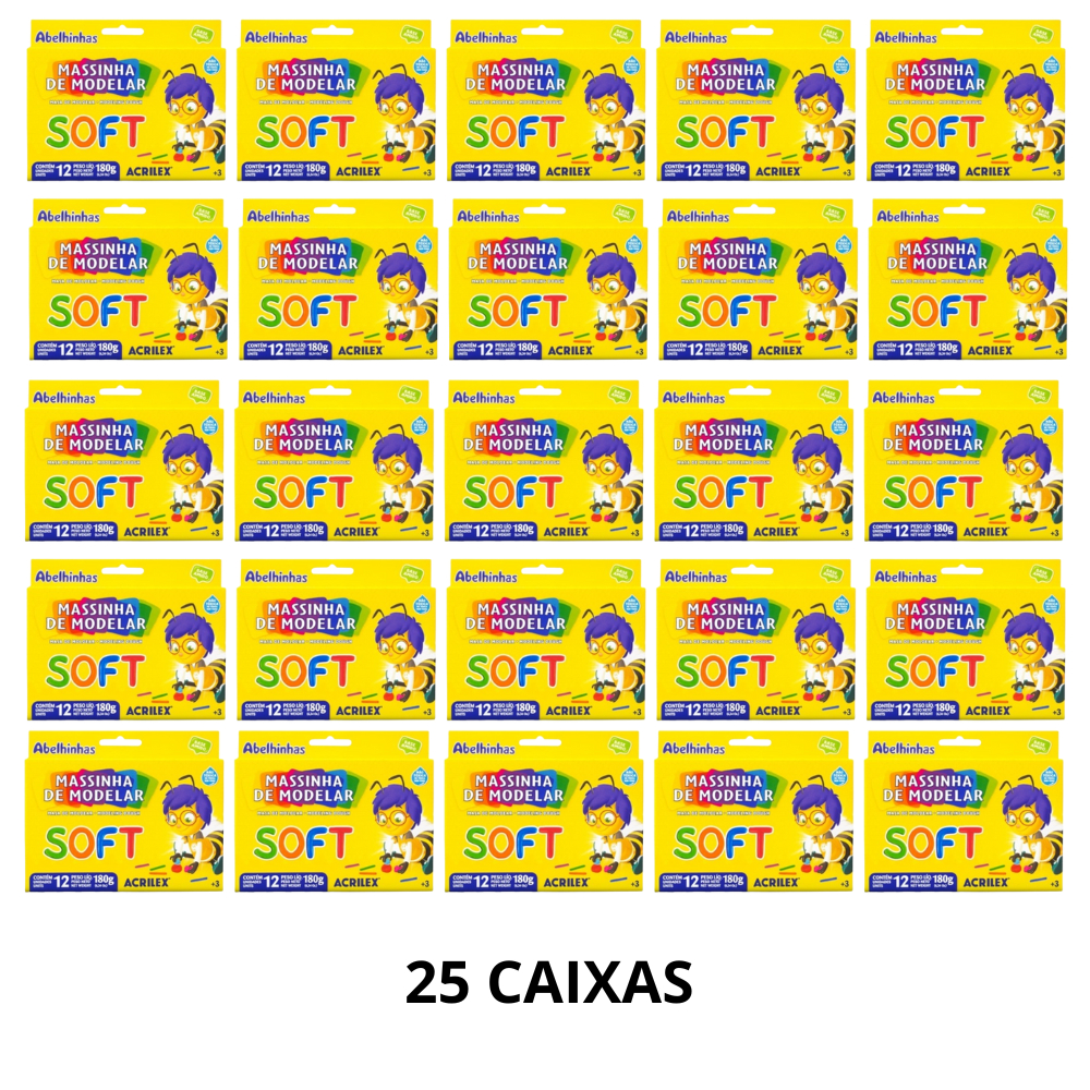 Kit Caixas Massinha De Modelar 12 Cores cada- Soft - Pacote com 5 - 10 - 15 - 20 peças - Acrilex