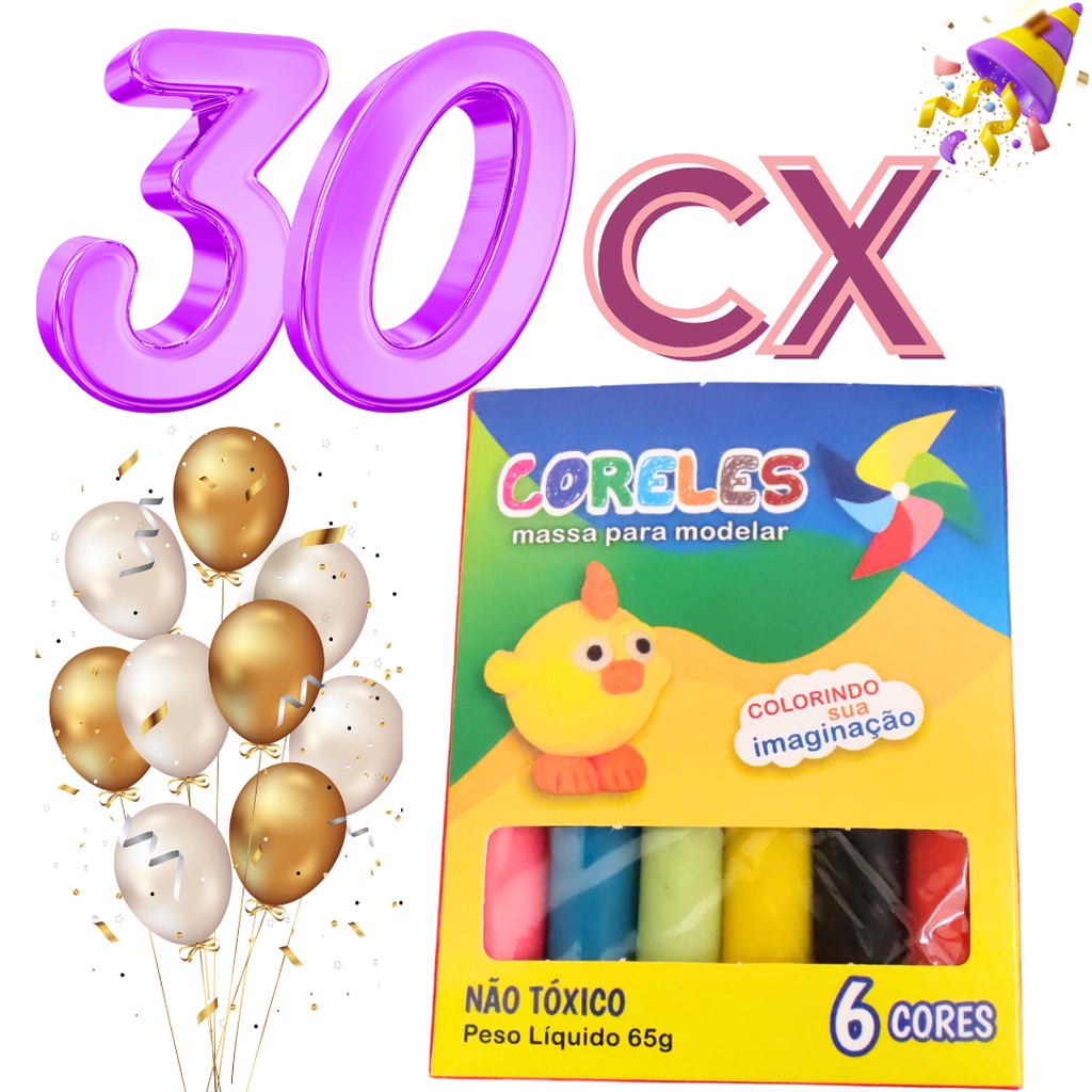 Kit Festivo: 30 unidades de Massinha de Modelar 65g para a Melhor Festa de Todas! com 6 cores