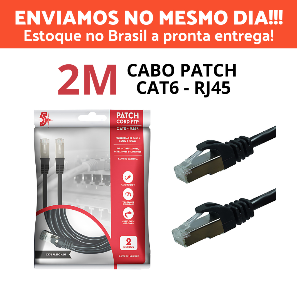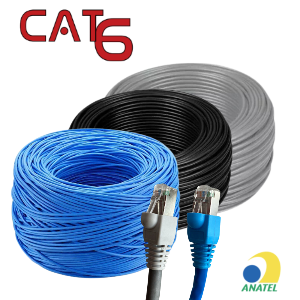 Cabo de Rede Cat6 RJ45 Blindado Alta Velocidade 2m 3m 5m 10m 15m Montado Homologado Anatel