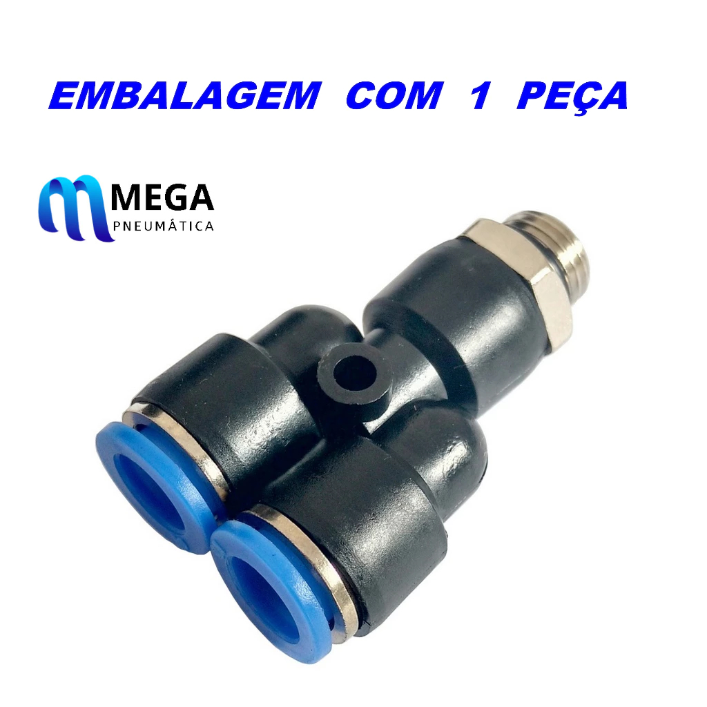 Conexão Pneumatica * Y * Macho Central Tubo em MILIMETRO e ROSCA BSP (Conexão Pneumática Instantânea) - EMBALAGEM COM 1 PEÇA