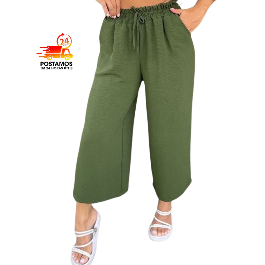 Calça Pantalona Pantacurt Feminina Cintura Alta com Bolso Elástico Tecido Duna não Amassa
