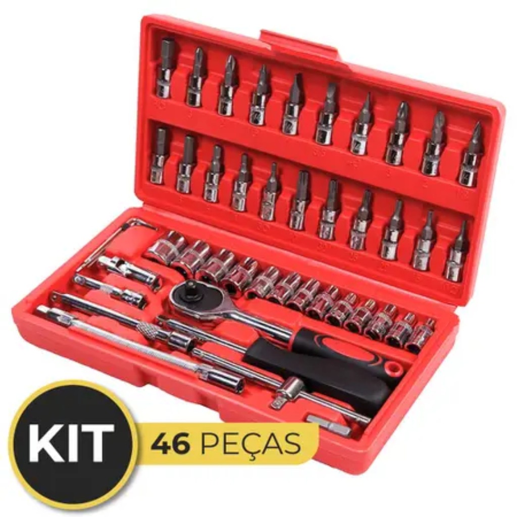 Kit Jogo De 46 Peças Com Chaves de Ferramentas Soquetes Aço CR-V + Maleta de Transporte LOJA TX