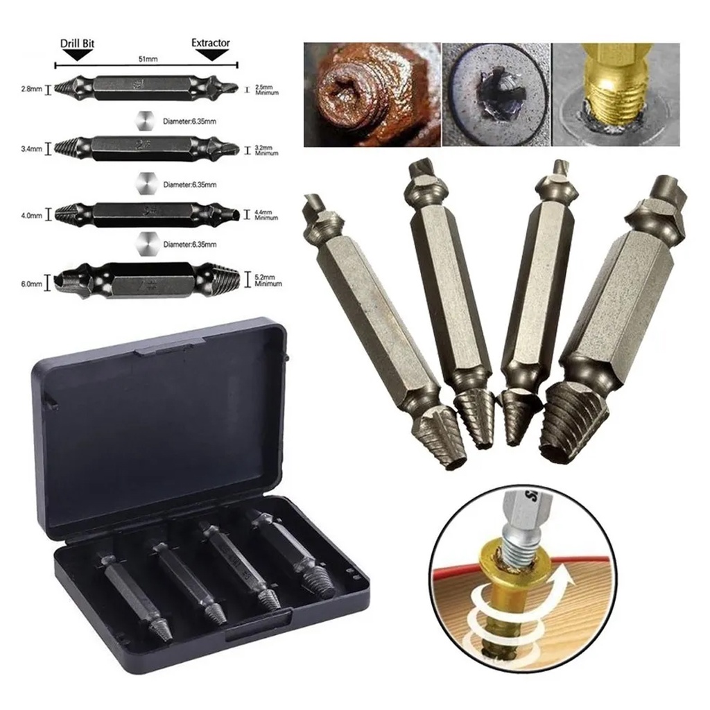 Kit Turbo Saca Parafusos Cabeça Torx Allen Phillips Fenda Para Parafuso Danificado Com 4 Peças Hessen