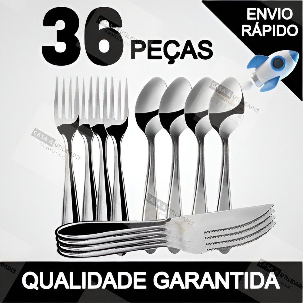 Jogo de Talheres 36 peças Aço Inox 12 Facas 12 Garfos de Mesa 12 Colher