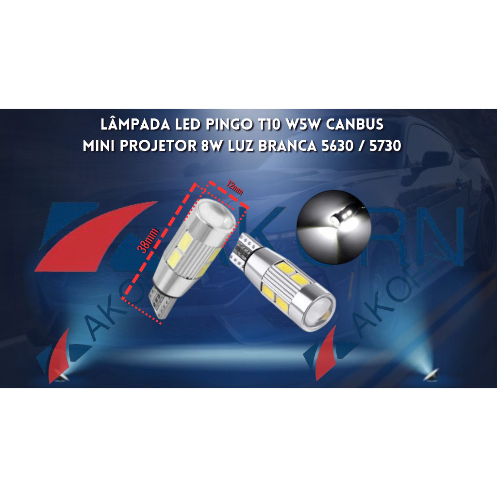 Kit 2 e 10 Lâmpada Led Pingo T10 W5W Canbus MINI PROJETOR 8w LUZ BRANCA 5630 / 5730 12V