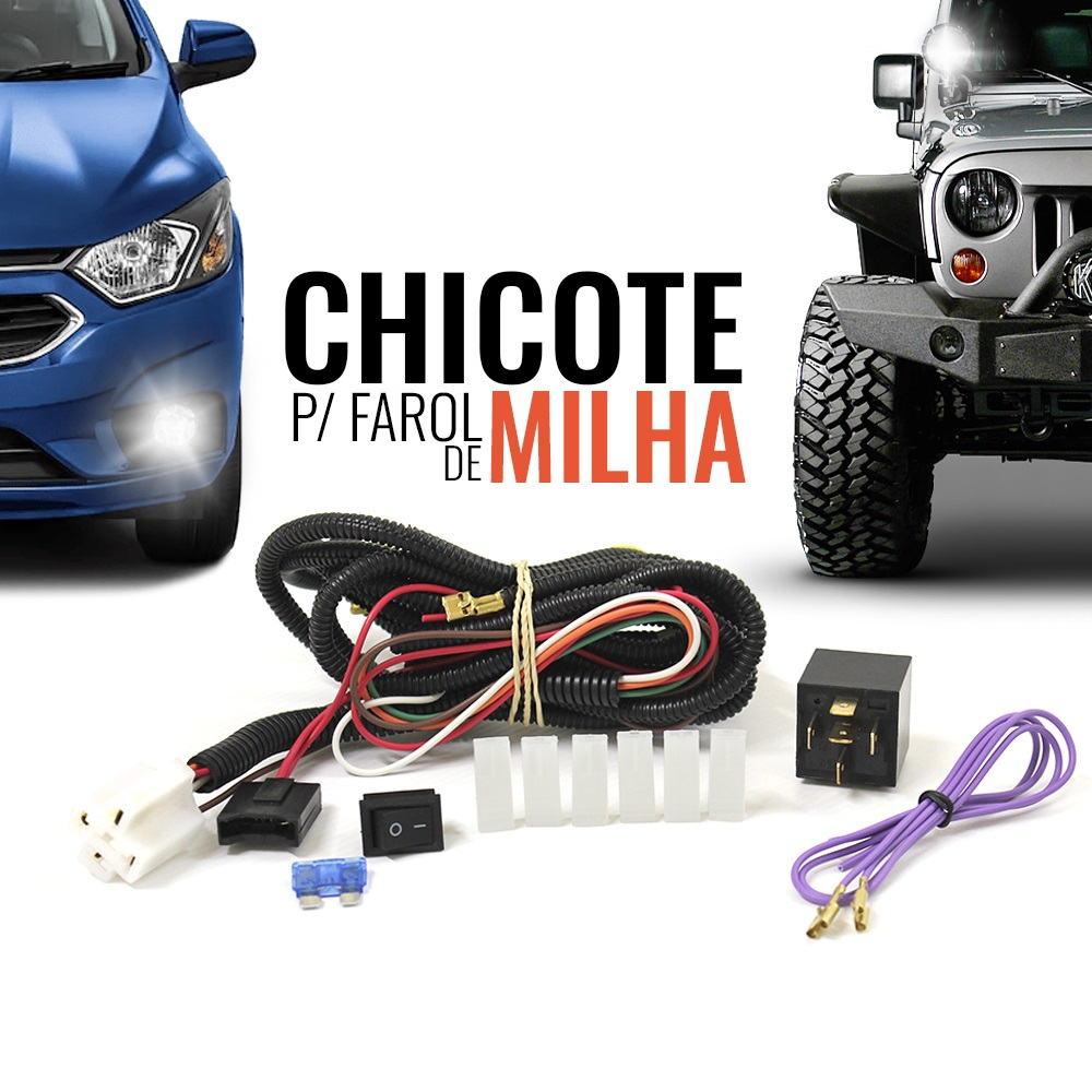 Chicote para Farol de Milha Universal 12v com Botão e Relê para Lâmpada LED Halógena Super Branca