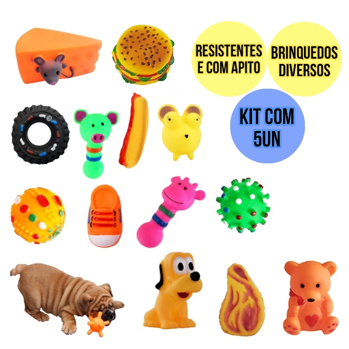 Brinquedo Mordedor Pet Cachorro Animais Kit C/ 5 Franxica de borracha p/ Cães Atacado