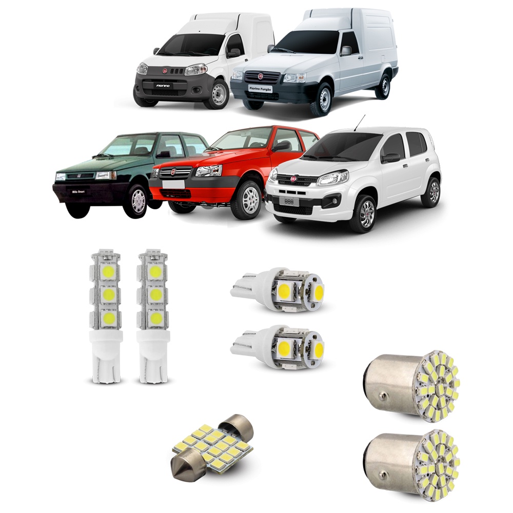 Kit Completo Led Luz Teto Placa Ré Meia-luz Fiat Uno Fiorino