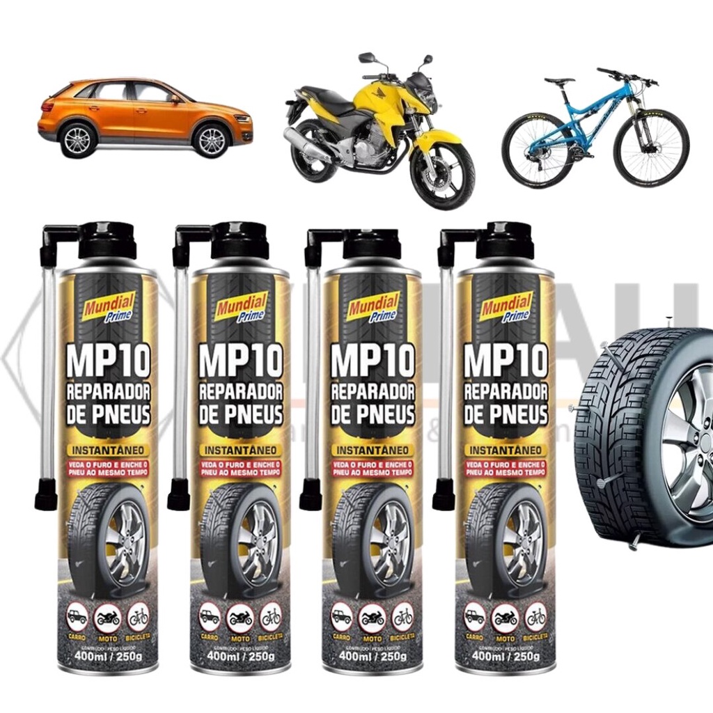 Kit 4x Reparador de Pneu Furado Spray Instantâneo Carro Moto Bicicleta MP10 400ml TOP