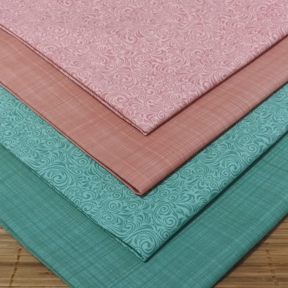 Kit Tecido Tricoline Arabesco Rosa E Verde 70 X 50cm - 4 Unidades