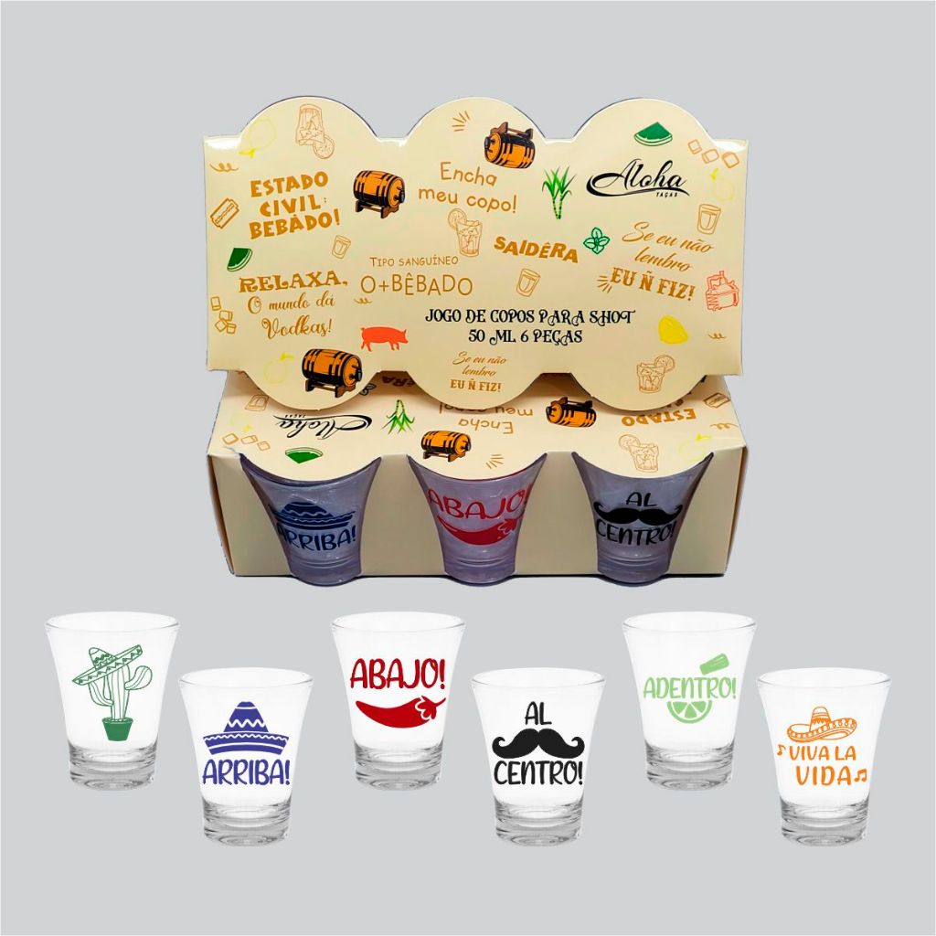 Kit 6 Copos Dose Tequila Shot Frases Cachaça Boteco 50ml Acrílico - Aloha