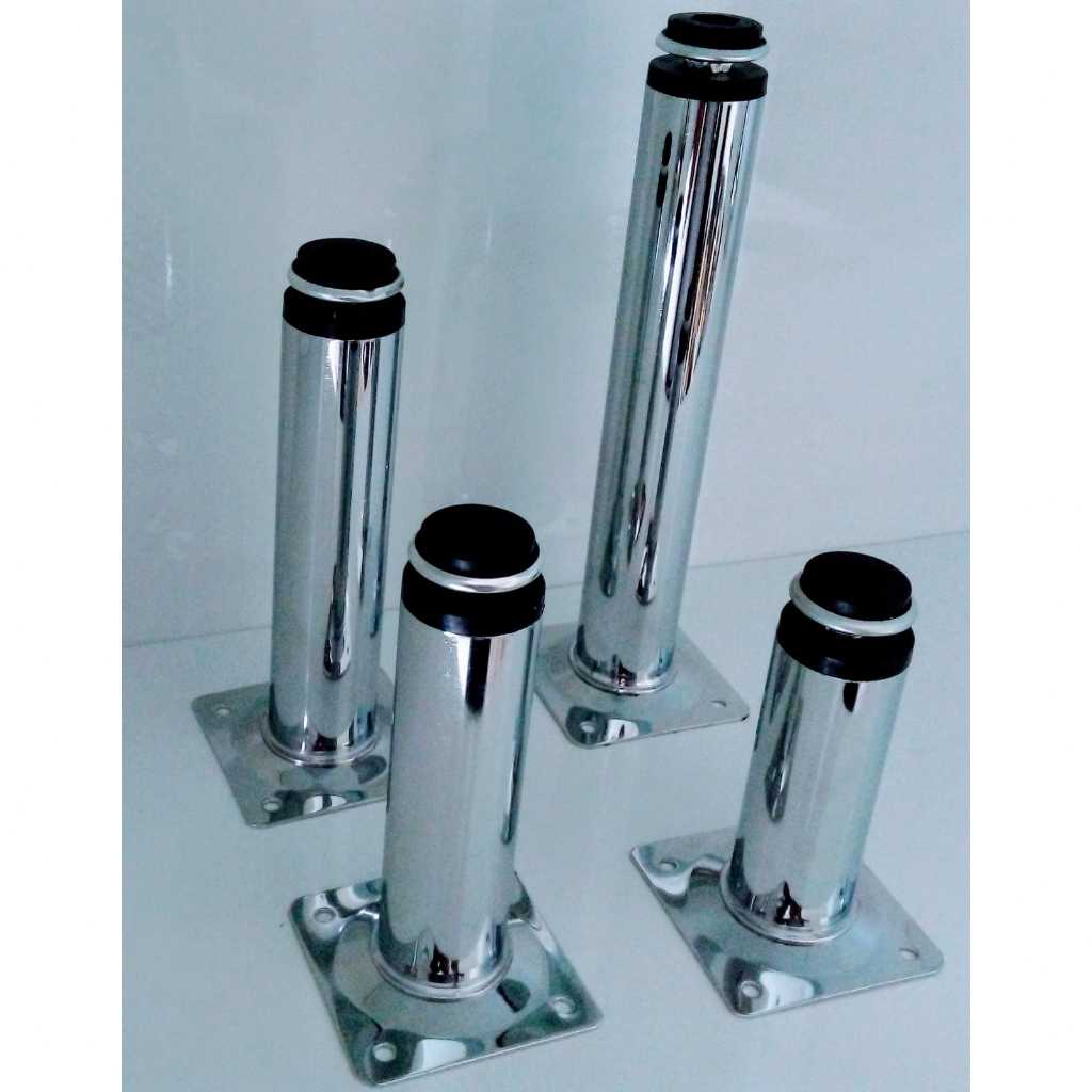 Kit com 5 pés aço cromado quadrado ou redondo 10 cm/12 cm/15 cm ou 20 cm para armários/móveis em geral