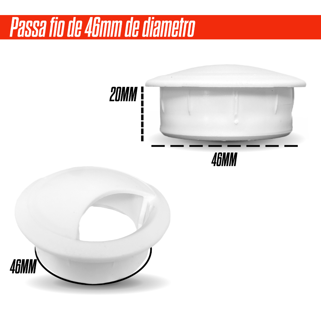 Kit com 5/10/20/40 Passa Fio Cabo 46mm Preto/Branco Acabamento para Moveis de Alta Qualidade