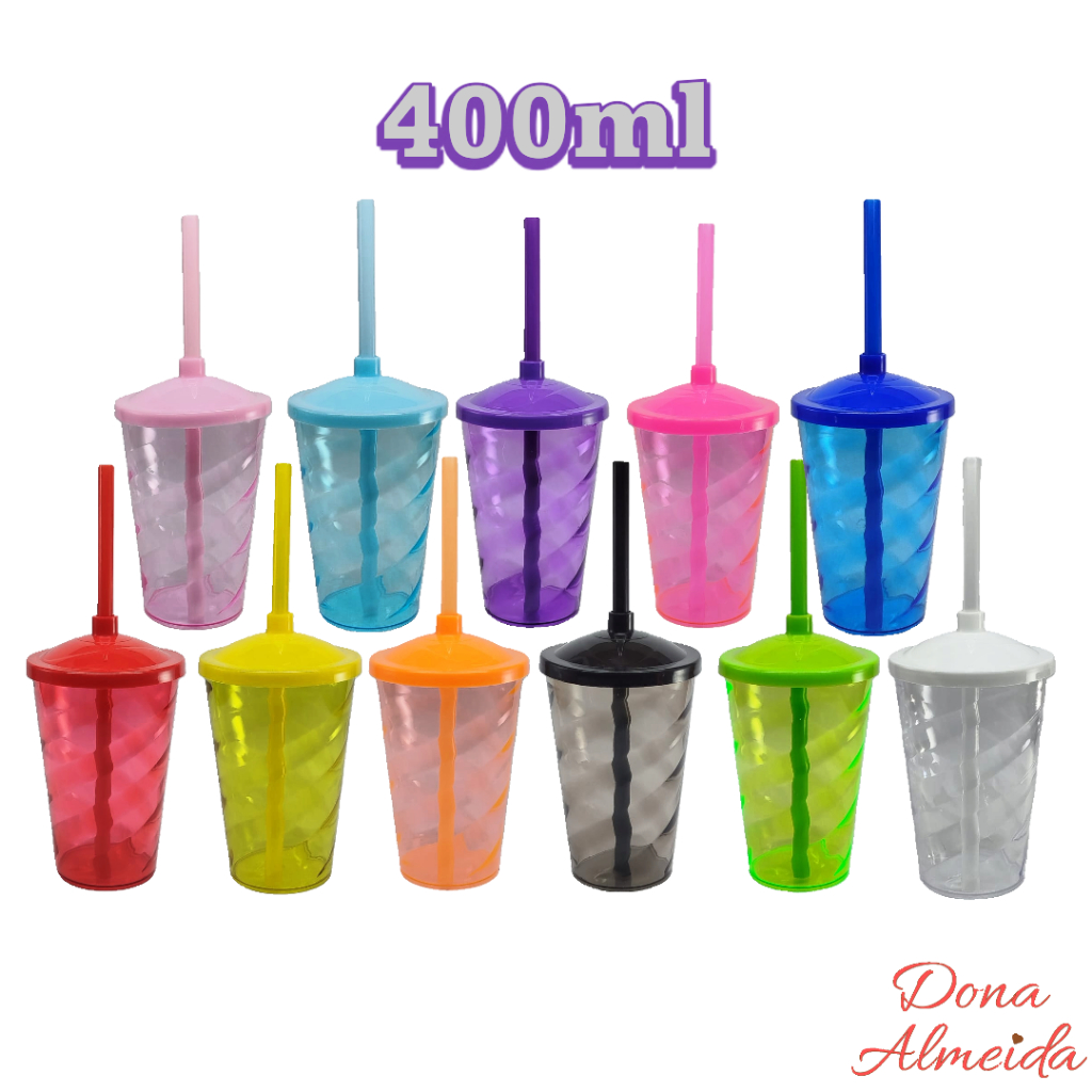 Kit 5-10-15-20 Copos Twister 400ml Translúcido com Tampa e Canudo – Perfeito para Festas e Eventos!