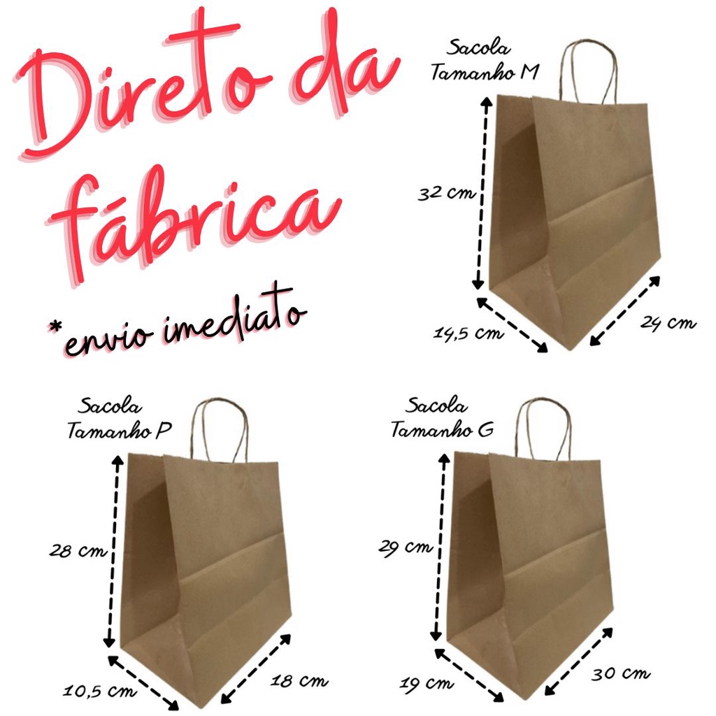 Sacolas Kraft 50 unidades escolha o tamanho PP P M G GG XG
