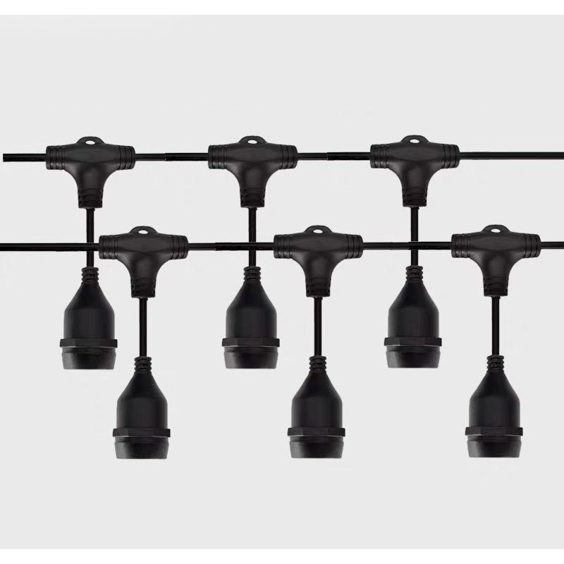 Varal de Luzes Festão Cordão Reforçado de Iluminação Área Externa Decoração Festa 15 Soquetes 15 Metros Preto IP66