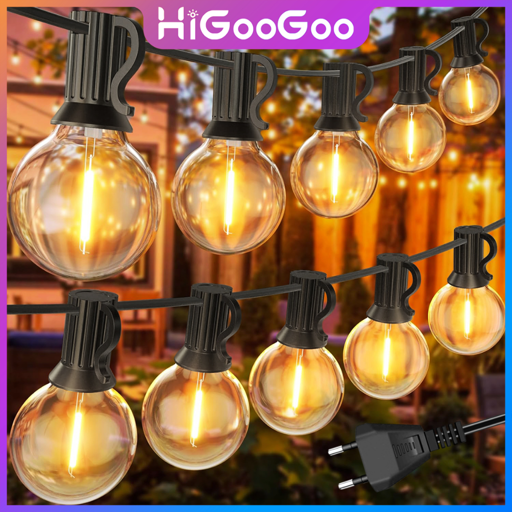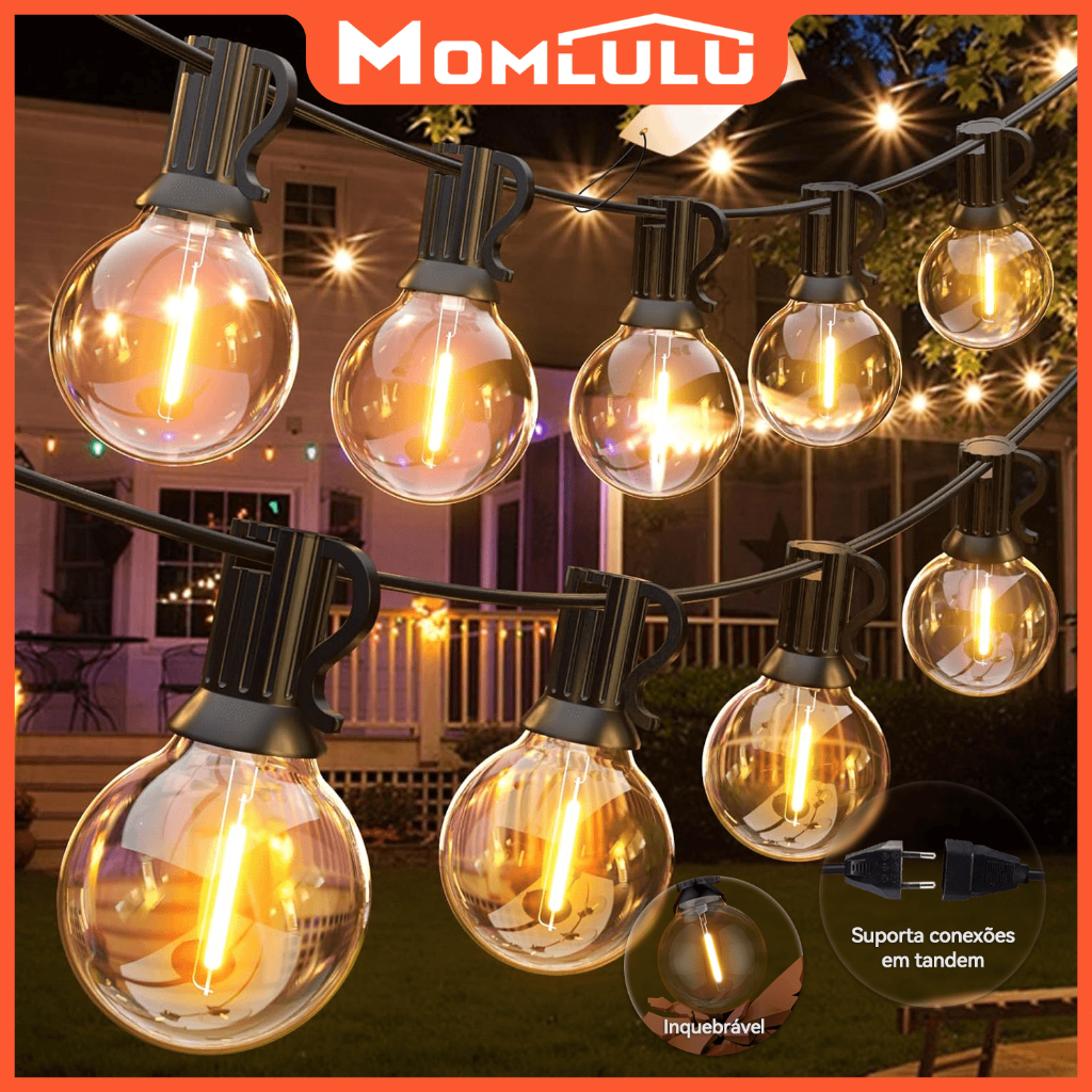 【G40 Inquebrável Cordão De Luz Iluminação Externa】Varal De Luzes Com Lâmpadas Decoração A Prova De Agua Para Jardim