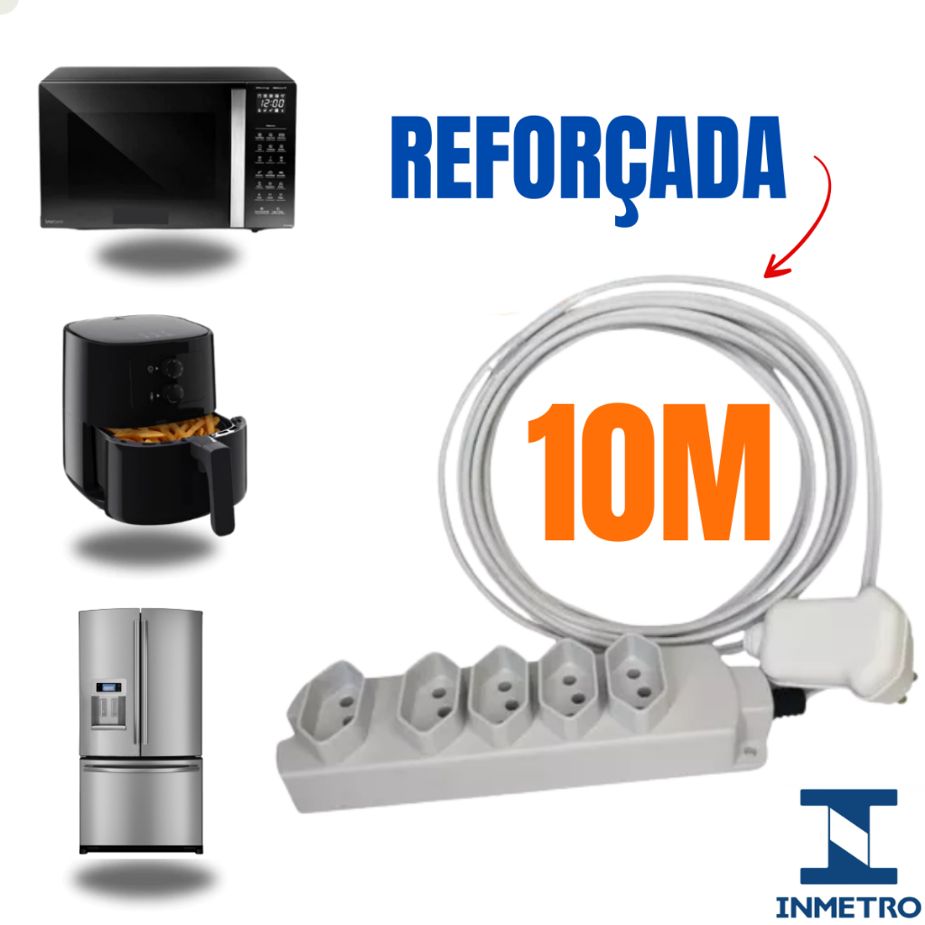 Extensão De 5 Tomadas 10/20 Amperes Com Desconto 10 Metros