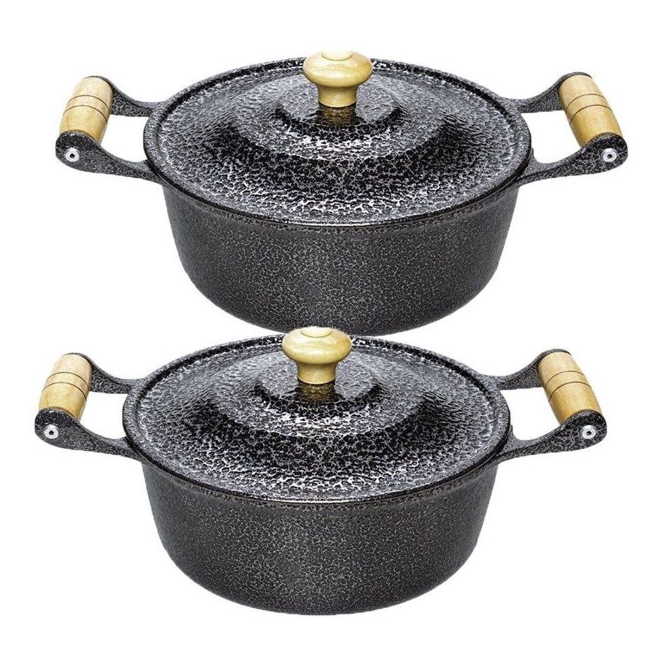 Jogo 2 Panela Caçarola Alumínio Fundido Preto e Pomel Madeira N 18 E 20